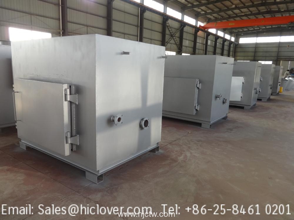Construction is dual/double combustion chamber with 02 sets oil burner, batch loadincineration equipment. Waste feed chamber is 1570Liters (1.57m3, TS150 PLC).Primary & Secondary combustion chambers and smoke filter chamber.Batch load on the bottom of chamber. Incinerator PLC panel control suit for local operation.Primary Combustion Chamber:※Main Feature:— Double Combustion Chamber— Double Italy Burner— Smoke Filter included–Burning Rate: 50-200kgs per hour optional–Primary Combustion Chamber: 1.57M3(1570Liters)— Incinerator Mainbody steel: 8mm thickness— Paint for outside face: 800°C Rate—Chamber Material: High Alumina Fire Brick Wall, 1750℃ Rate— Idea for campsite average or below 600 people— Chimney: 10 Meters, Stainless steelFeeding door primary chamber: